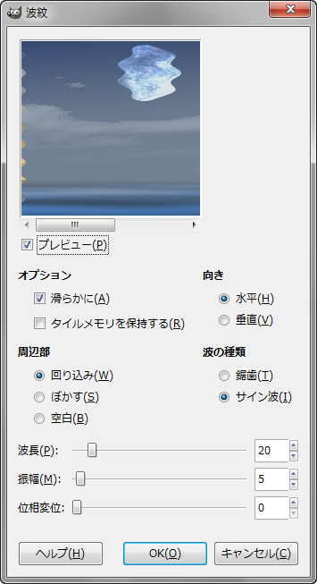 ≫ GIMP – “波紋”ダイアログ