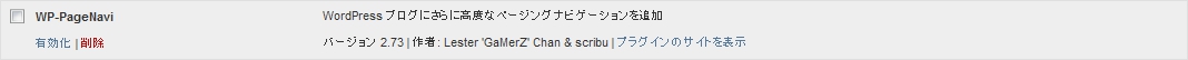 管理パネルで、「プラグイン」をクリックし、プラグイン設定画面を開く。「WP-PageNavi」を探し有効化。