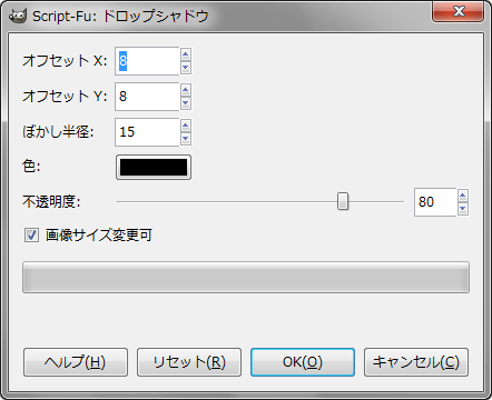 GIMP – “ドロップシャドウ”ダイアログ