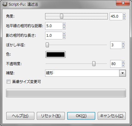 GIMP: フィルタ: 照明と投影: 遠近法 … 遠近感のある影を描く