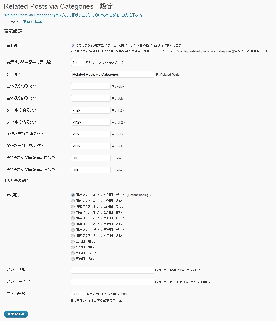 WordPress プラグイン – Related Posts via Categories 窶・設定