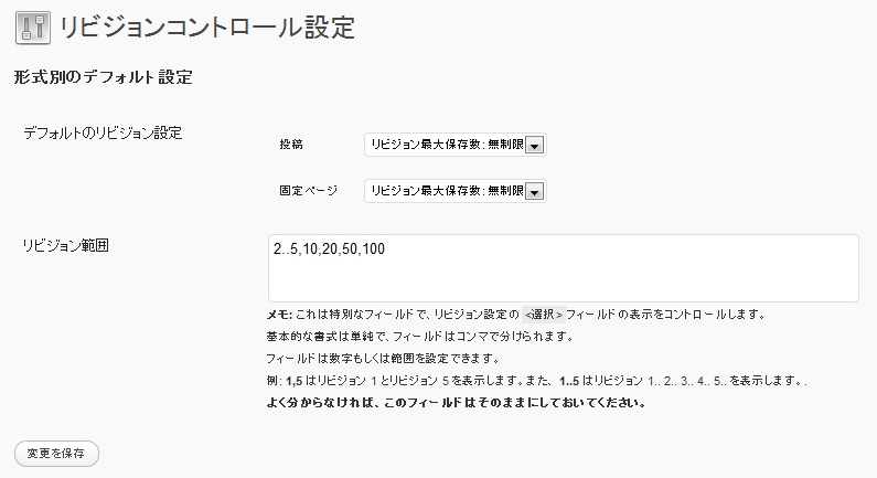 WordPress – 「リビジョンコントロール設定」画面
