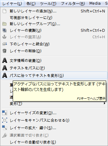 ← GIMP: レイヤー: パスに沿ってテキストを変形