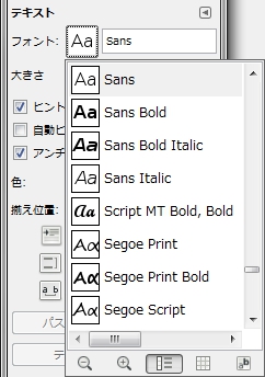 GIMP – ツールボックス ≫ テキストツールオプション ≫ フォント ≫ リストで表示