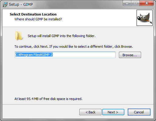 上記手順でダウンロードした「gimp-2.8.0-setup.exe」をダブルクリックすると、右の画面が開く。