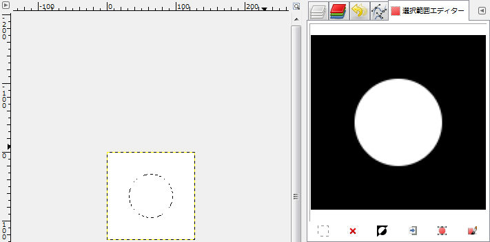 「選択範囲エディター」ダイアログの表示枠は、選択範囲内を白、選択範囲外を黒で、表している。