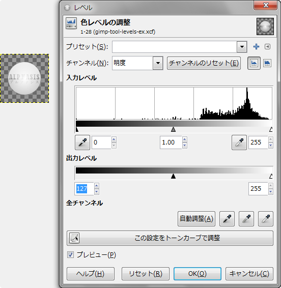 GIMP: 色: レベル