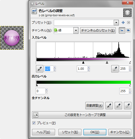 GIMP: 色: レベル