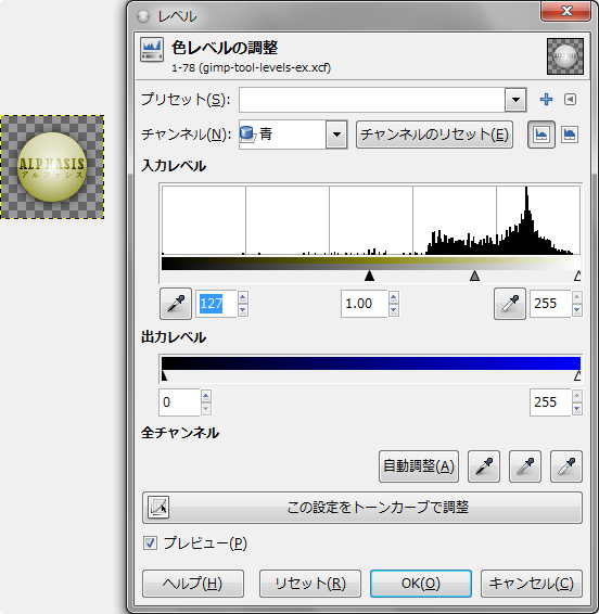 GIMP: 色: レベル