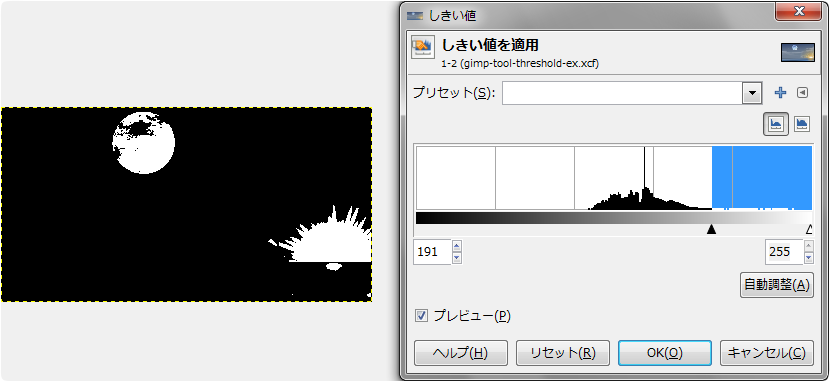 GIMP: 色: しきい値