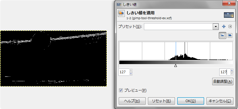 GIMP: 色: しきい値