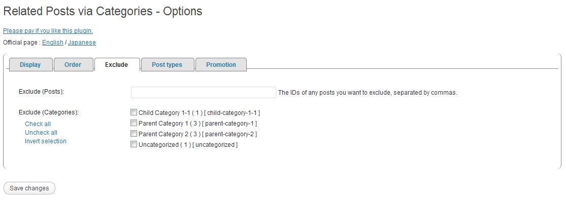 Checkbox: The category name. ( The number of uses of this category. ) [ The category slug. ]