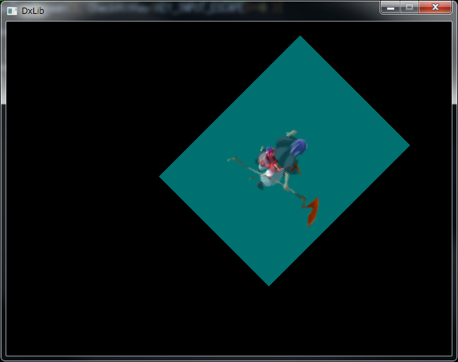 DrawRotaGraph( 400, 200, 2.0, PI/4, Handle, TRUE ); //画像の描画