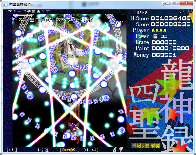 「光る表現」が可能になるのです。当サイトで配布している四聖龍神録Plusという弾幕シューティングゲームにも加算ブレンドはたびたび使われています。
