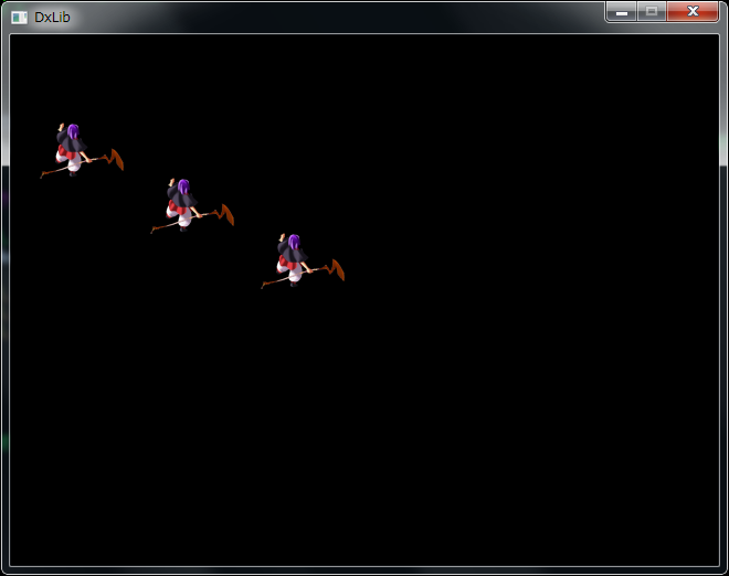 DrawGraph( 200, Count%150, Handle, TRUE ); // 周期 150カウント でループ表示する