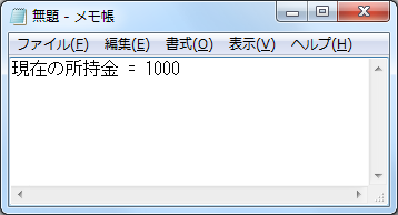 というのが、変数moneyに入っていた「1000」の値です。