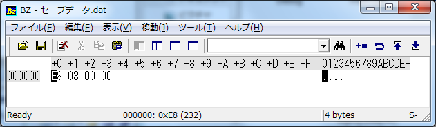しかし生成したセーブデータをバイナリエディタで開くと・・。