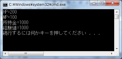 printf("HP=%d\nMP=%d\n所持金=%d\n経験値=%d\n",