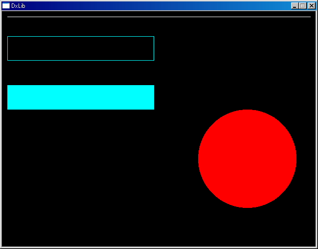 DrawCircle( 500 , 300 , 100 , Red , TRUE) ; // 円を描画(塗りつぶし)
