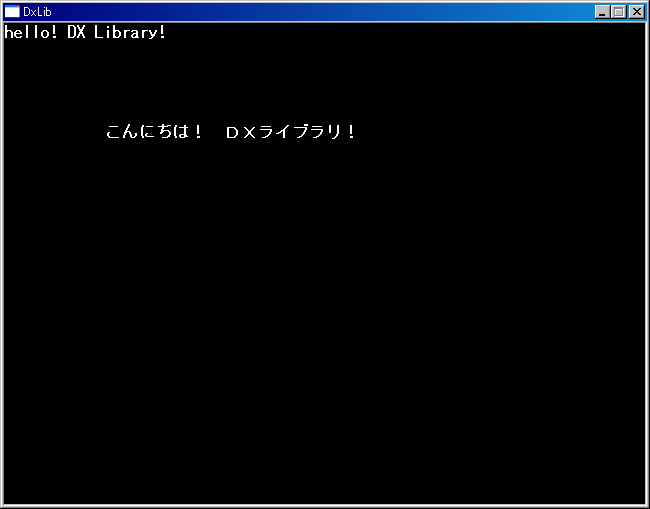 DrawString( 0, 0, "hello! DX Library!" , White); //文字列表示