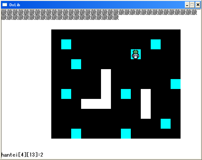 DrawFormatString(0,460,GetColor(0,0,0),"hantei[%d][%d]=%d"