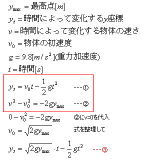 プログラムで描きたい放物線は例えば「2m上まで投げ上げた時の時間とともに変化するy」とかいうときですよね。