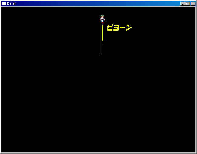 また、y>=0の時に描画し、画面の外に出たら、飛び上がりフラグを戻す。