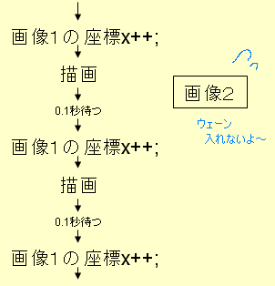 せっかく画像1のx座標を1ずつ増やして描画するプログラムを作ったとしても、