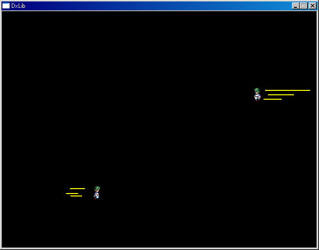 みなさん気をつけましょう。サンプルプログラムでは2つのキャラを同時に動かしています。