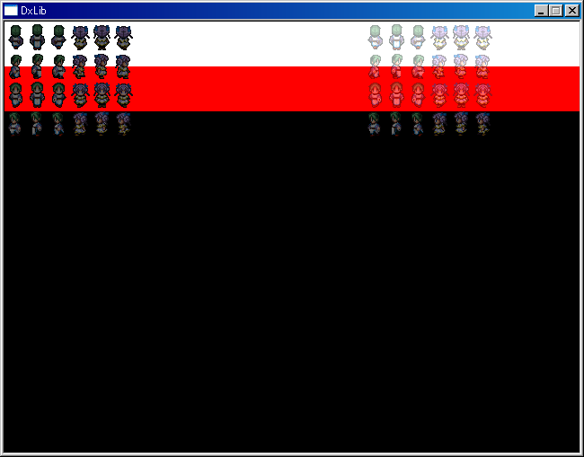 キャラがす〜〜っと消えていくようなモーションを作るときは輝度の変更ではなく、αブレンドしてやらないと