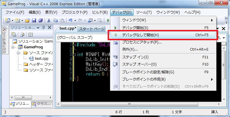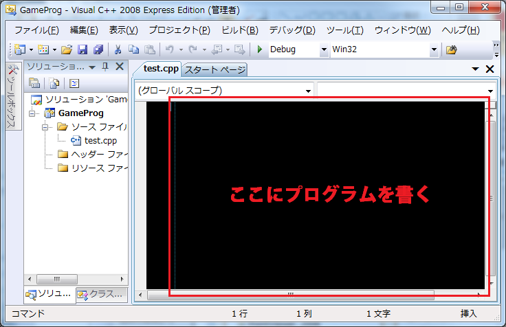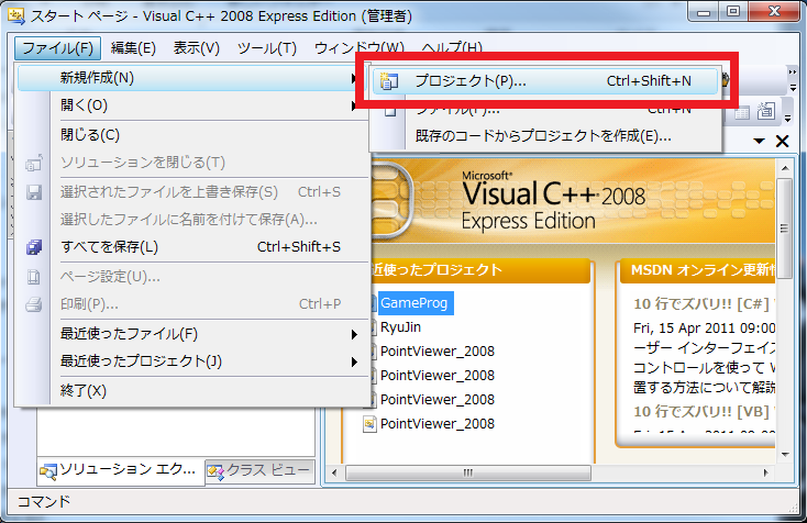 では、Visual C++を立ち上げます。