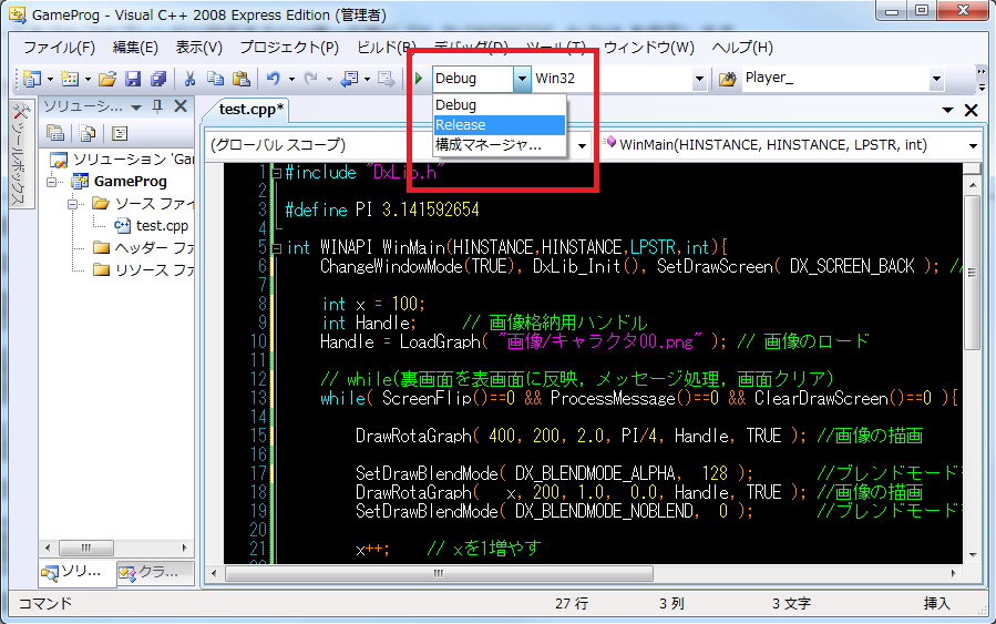 (Releaseにするとデバッグは出来なくなりますが、不要な処理が取り除かれ、実行ファイルが軽く、処理速度が向上します)