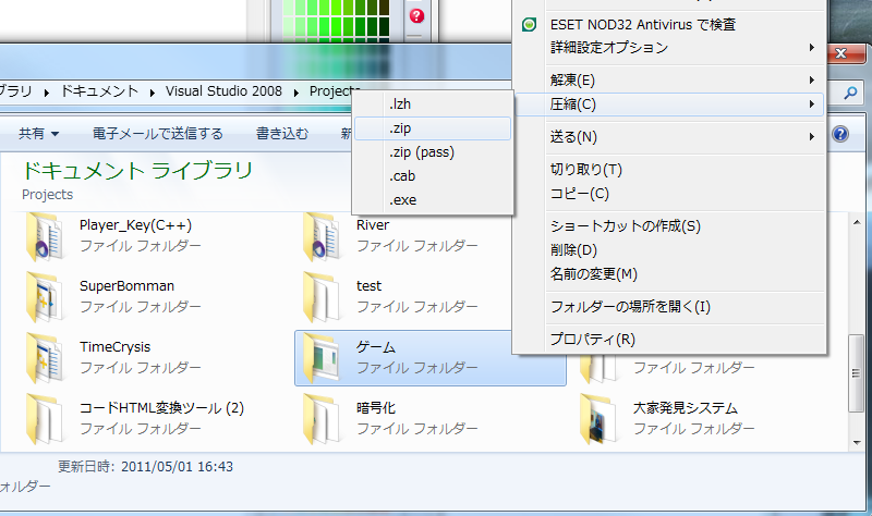 後は、この「ゲーム」フォルダを右クリックして