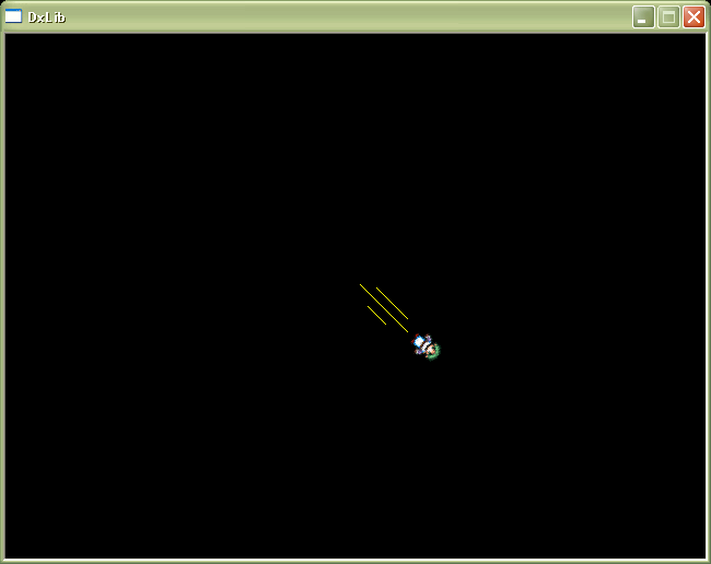 サンプルはZキーが押されるたびに初期位置(画面中央)に戻り、PI/5ずつ角度を変化させてとんでいきます。