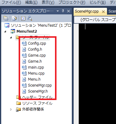 これで「Menu.h」のファイルが作られ、追加されたと思います。これを今回必要な分だけ繰り返します。