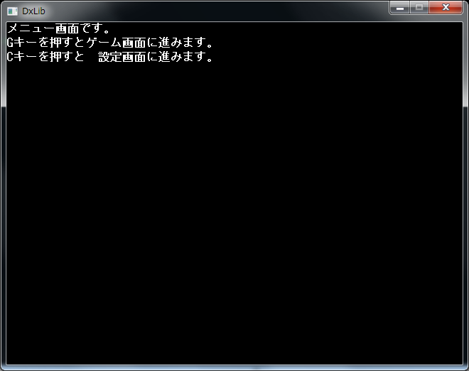 DrawString(0,40,"Cキーを押すと 設定画面に進みます。",GetColor(255,255,255));