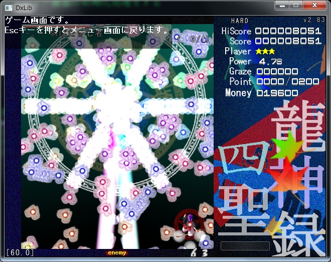従って、BaseScene::Drawの内容を変えるとGame,Config,Menuの表示すべてに影響します。