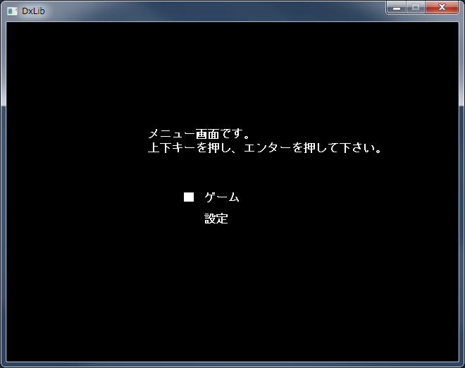 DrawString(200, 150, "メニュー画面です。",GetColor(255,255,255));