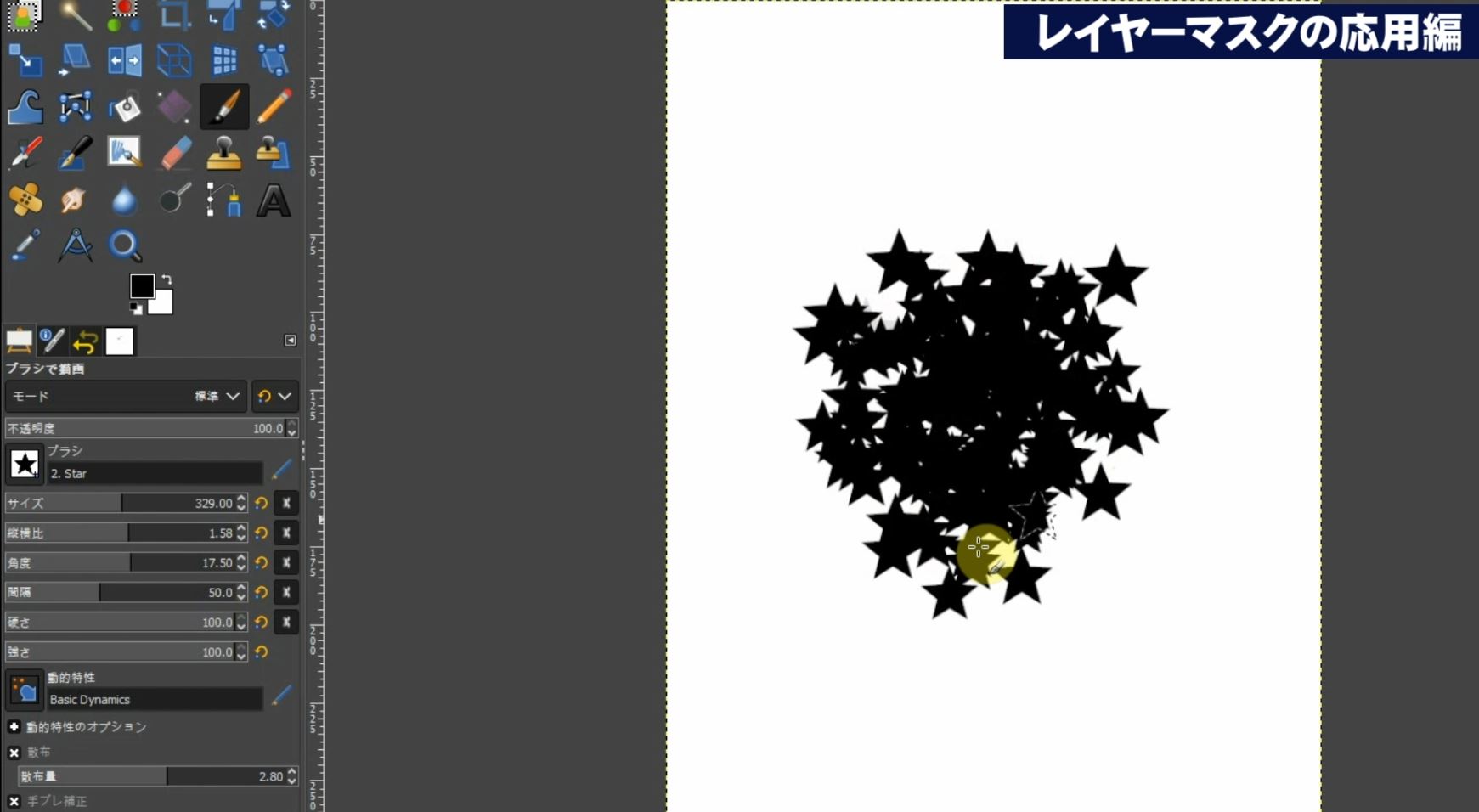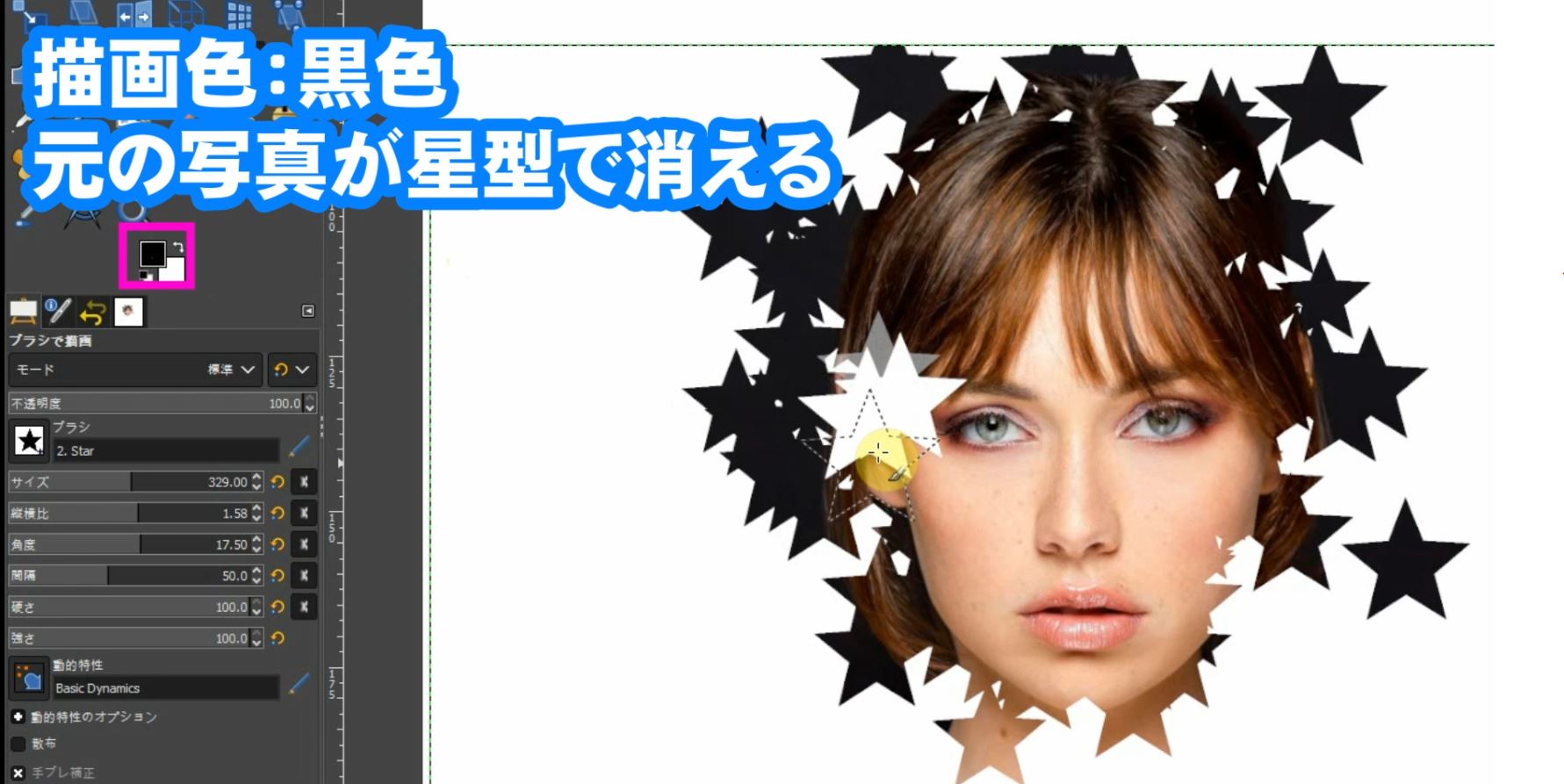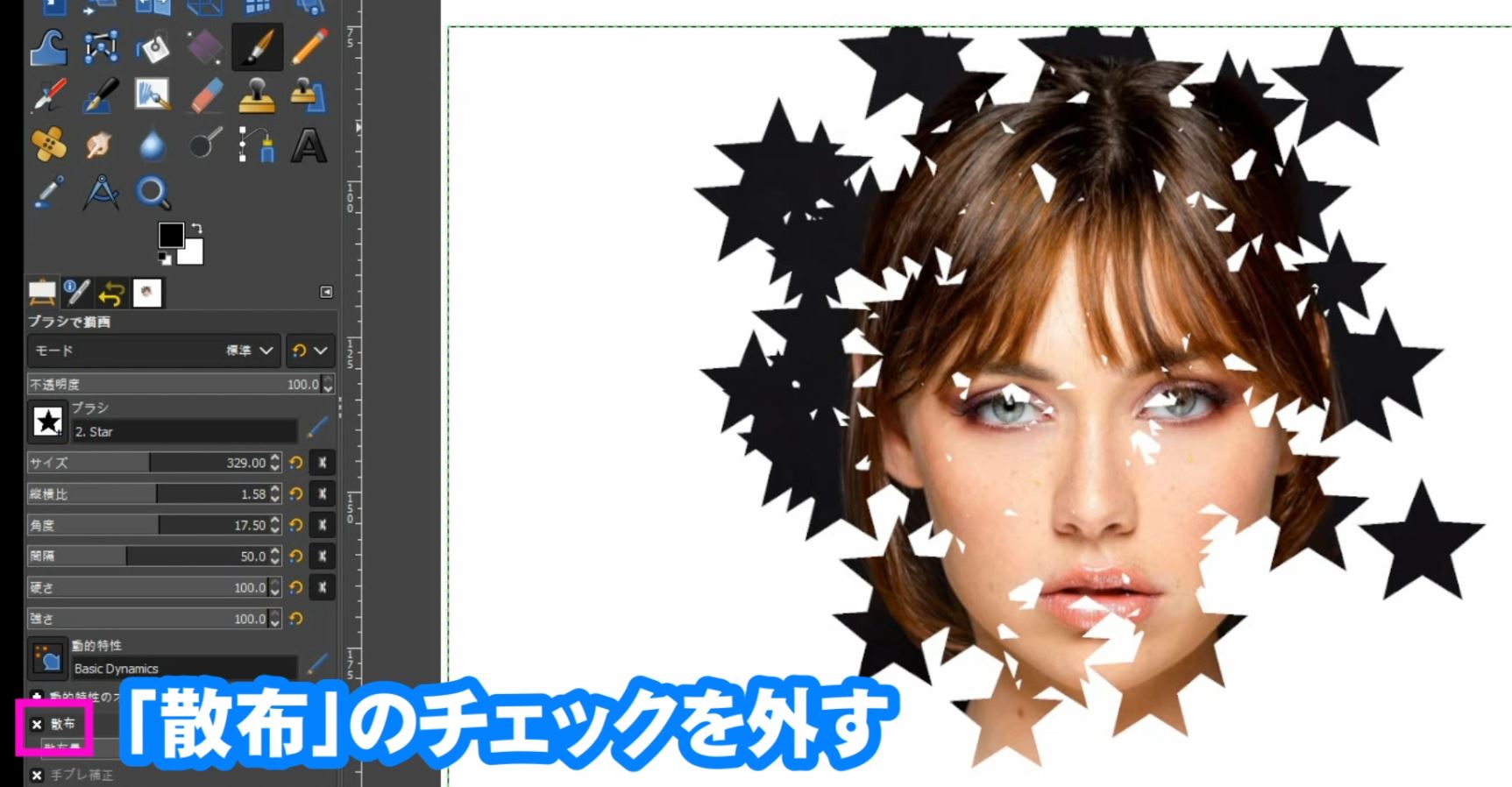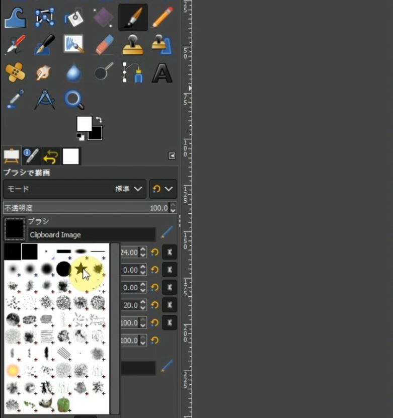 ツールオプションでブラシの種類を「星」を選択します。