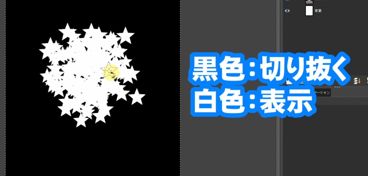 レイヤーマスクは「黒色を消す」「白色を表示」させます。