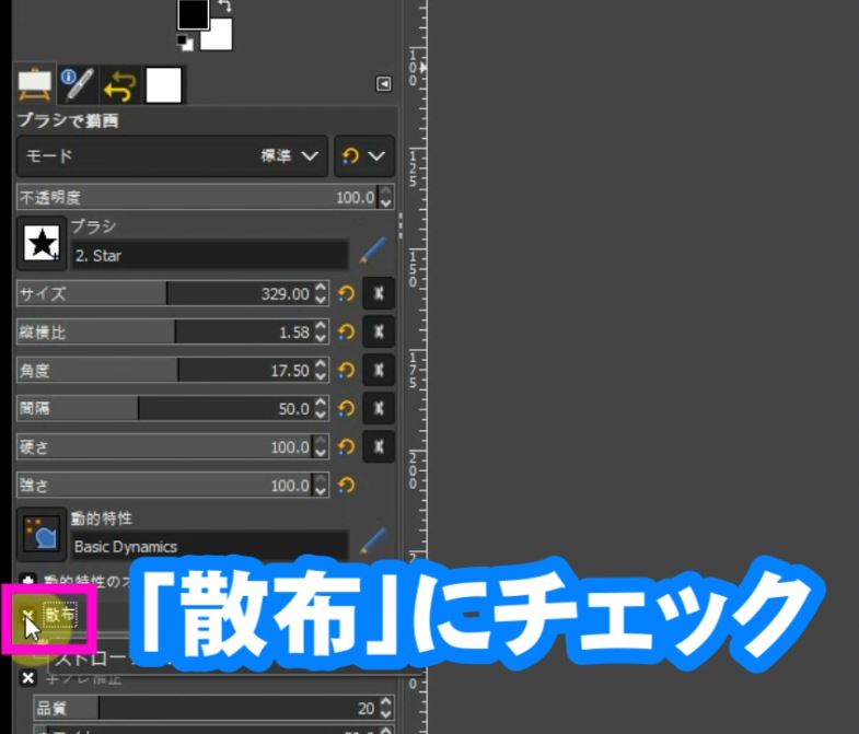 「散布」にチェックを入れます。
