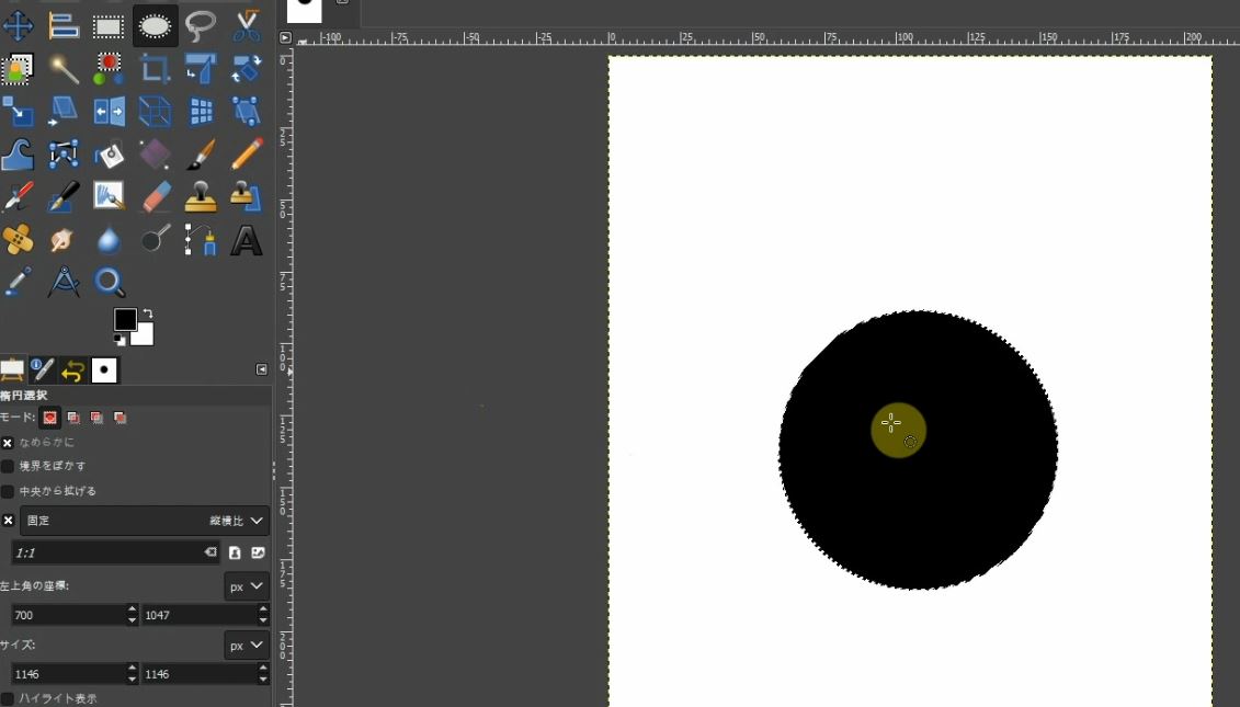 「楕円選択」ツールを選択してShiftキーを押しながら正円の範囲選択を作ります。