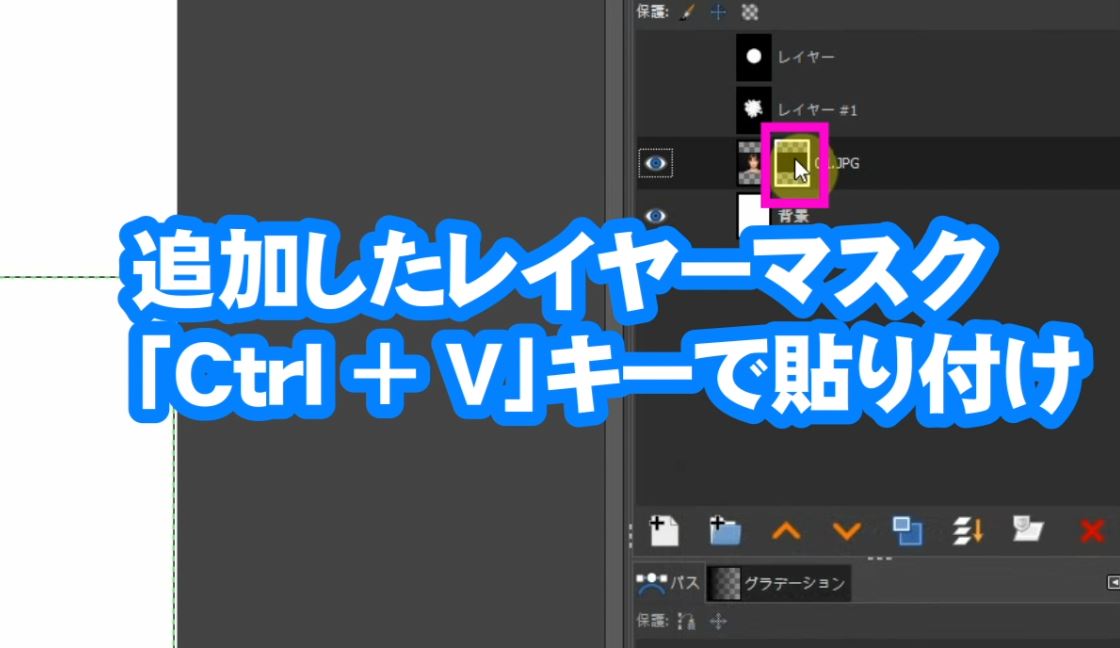 追加したレイヤーマスクに「Ctrl+V」キーで貼り付けます。
