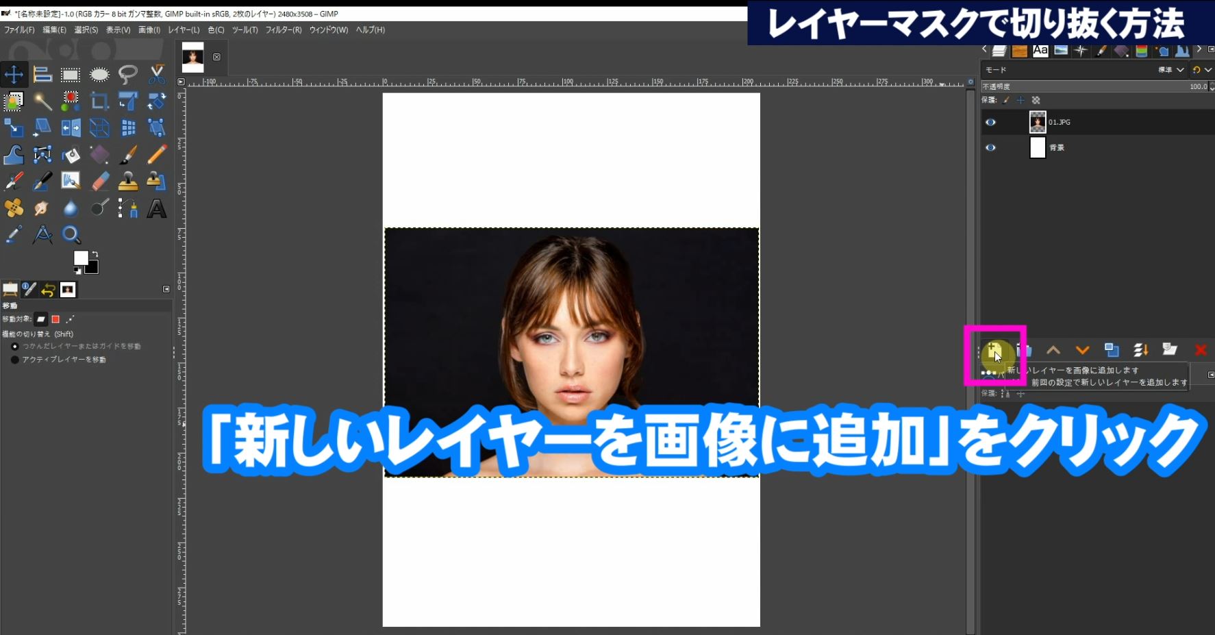 「新しいレイヤーを画像に追加」をクリックしてレイヤーを追加します。