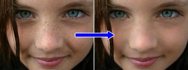 ほうれい線やホクロの除去には修復ブラシツールが便利です。 目の下のクマのように明るさの調整が必要な箇所には、スタンプツールを比較(明)モードや比較(暗)モードで使うのが最適です。 ソバカスは、『ガウスぼかしフィルタ』を使って周囲になじませるのがよいでしょう。