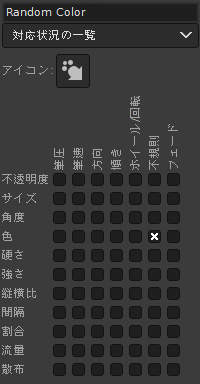 上図のように不透明度・サイズ・角度 x 不規則が有効になっていることがわかります。
