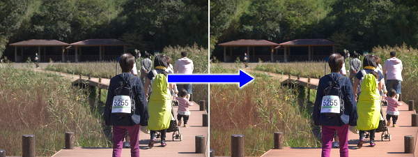 上図のように補正されます。 彩度が高くなったことでメリハリのある写真になりました。