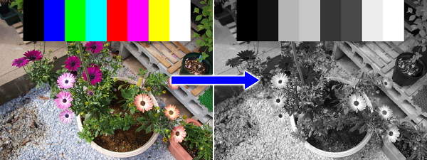 光度でモノクロ化されるため、人間の目が感じる明るさと近い結果になります