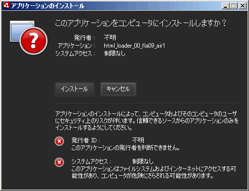■AIR アプリケーションをインストールする
