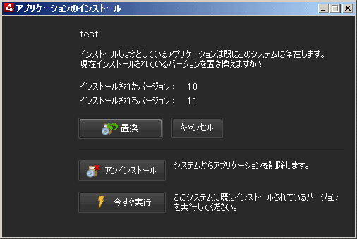同一アプリのバージョンアップのリリースをしたい場合は、全てのインストーラに同じ ID を指定します。また、電子署名も同じになるようにします。